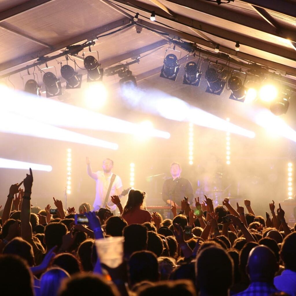 (above – the Hooded Ram Festival stage going wild for Scouting for Girls during TT 2018)