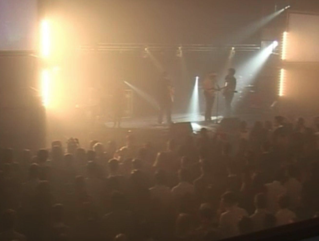 (below – a screen grab from the SD live stream of the concert showing the ‘overly’ ambitious staging and lighting design, we only skipped ‘a few’ lessons for the load in!)